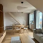 An equipped kitchenette features coffee and tea making equipment, along with a fridge and kitchenware for self-catering purposes. Wroclaw-Copernicus airport is 125 km away from this accommodation.